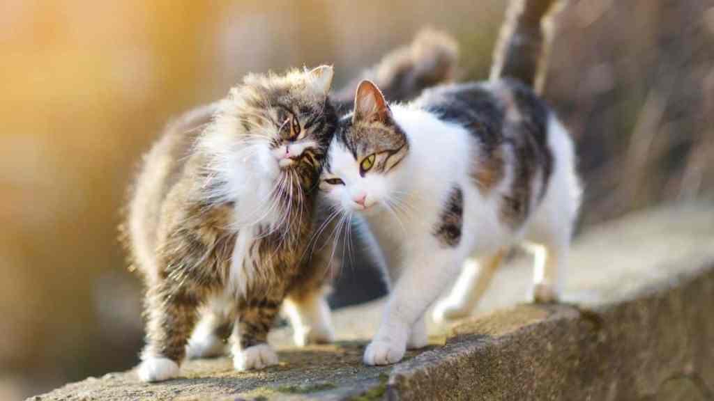 Cats in a bonded pair will rub against each other often, sharing scent as a way of reinforcing social ties.