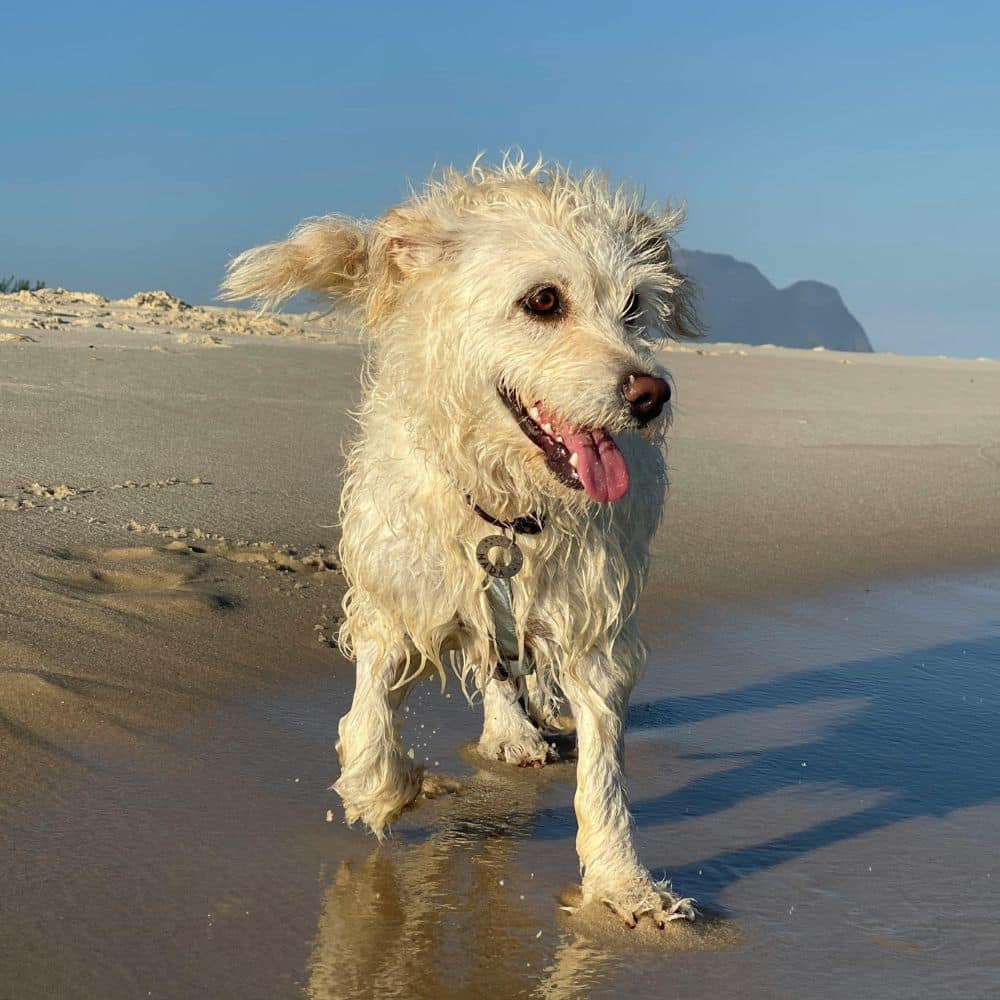 Energetic and eager to please, with a love of water and fetch. - Whoodle (Wheaten Terrier x Poodle)